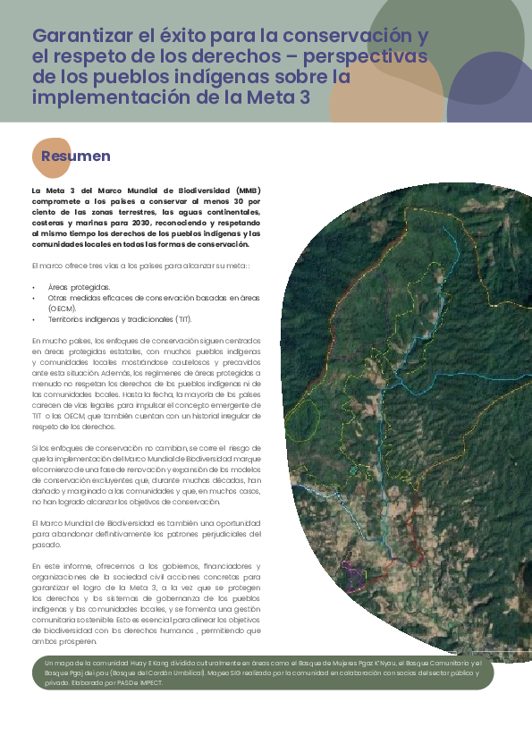 as reflexiones en este informe tienen como objetivo promover debates prácticos sobre las maneras de avanzar hacia la Meta 3, logrando resultados de conservación y respetando los derechos. Las conclusiones buscan ofrecer acciones claras y directas que gobiernos, financiadores y organizaciones de la sociedad civil pueden implementar, tanto de forma conjunta como por separado, para alcanzar la Meta 3 a través de las tres vías.